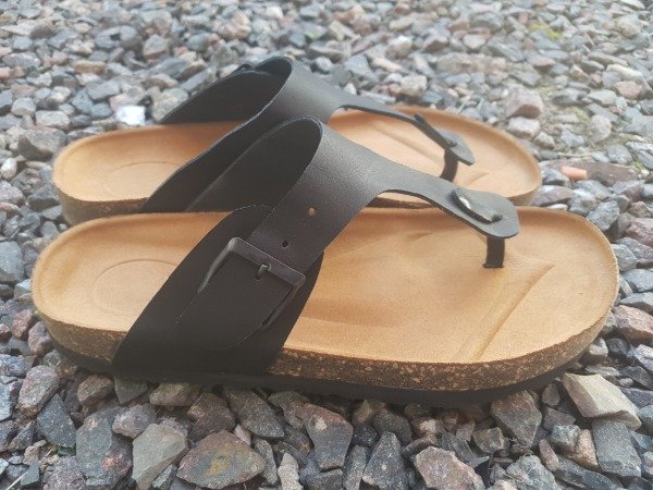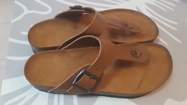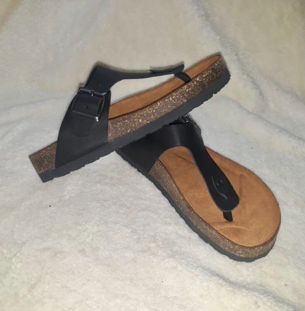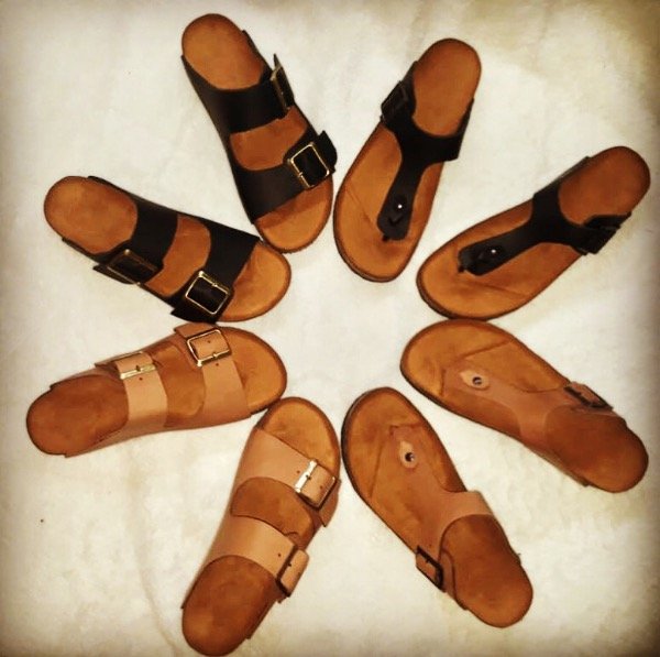 • Sandalias de cuero. Suela de corcho y goma de alta densidad.
